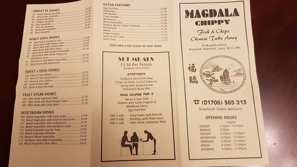 Located at 29 Magdala St in Heywood, Magdala Chippy is both a fish and chips takeaway and an exceptional Chinese restaurant. The spot enjoys a prime position, making it accessible to diners by car or on foot from various neighborhoods in the area. The casual setting welcomes everyone from families to busy individuals looking for a quick and satisfying meal. With wheelchair-accessible seating, the venue accommodates all visitors, ensuring comfort for everyone. Parking is stress-free, with free street parking available nearby.